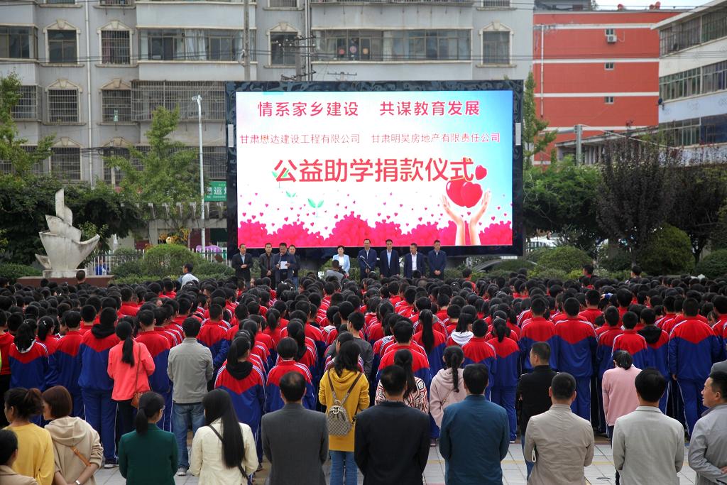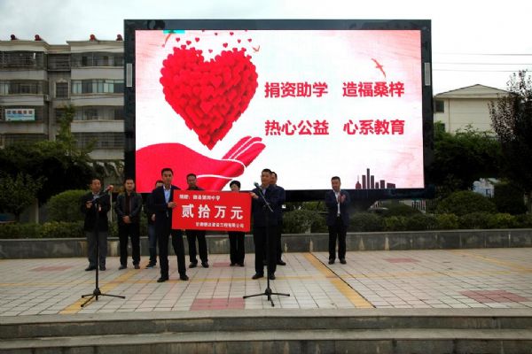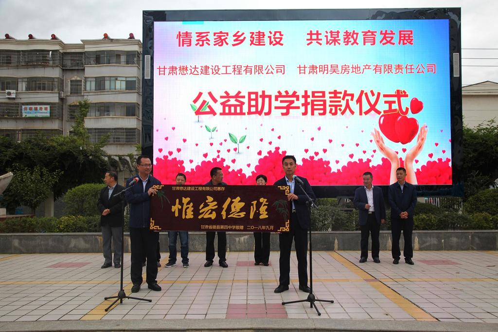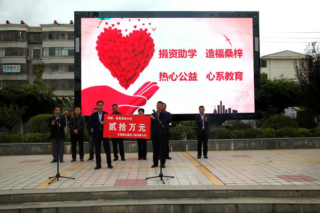 9月26日,“情系家鄉(xiāng)建設(shè) 共謀教育發(fā)展”公益助學(xué)捐款儀式在徽縣四中隆重舉行。縣委、縣政府、縣教育局有關(guān)領(lǐng)導(dǎo)及四中全體師生參加捐款儀式,公司總經(jīng)理封曉成、副總經(jīng)理尹向宏出席捐款儀式。
