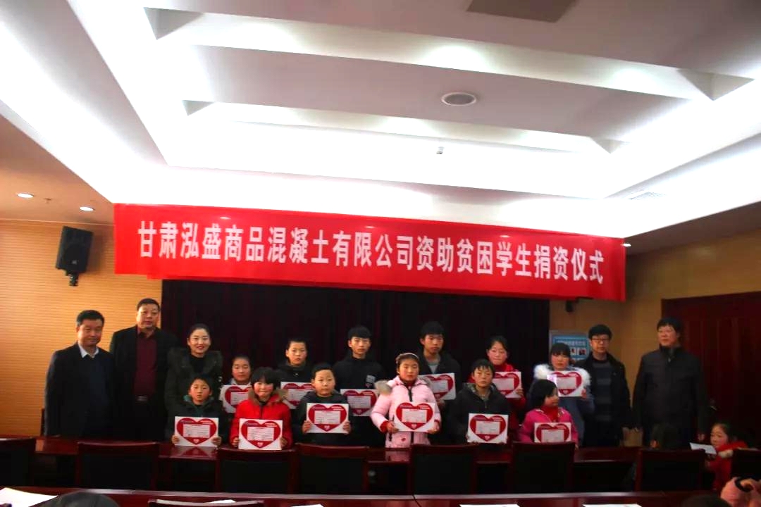 1月11日下午,甘肅泓盛商品混凝土有限公司資助貧困學(xué)生捐資儀式在徽縣政府綜合樓20樓2號(hào)會(huì)議室隆重舉行。縣教育局副局長(zhǎng)黃潤(rùn)珍、團(tuán)縣委副書記李姣、縣學(xué)生資助中心主任張?zhí)嵭、公司領(lǐng)導(dǎo)張志強(qiáng)、尹向宏出席儀式,受助學(xué)生、學(xué)生家長(zhǎng)以及有關(guān)單位負(fù)責(zé)人共計(jì)80余人參加儀式。