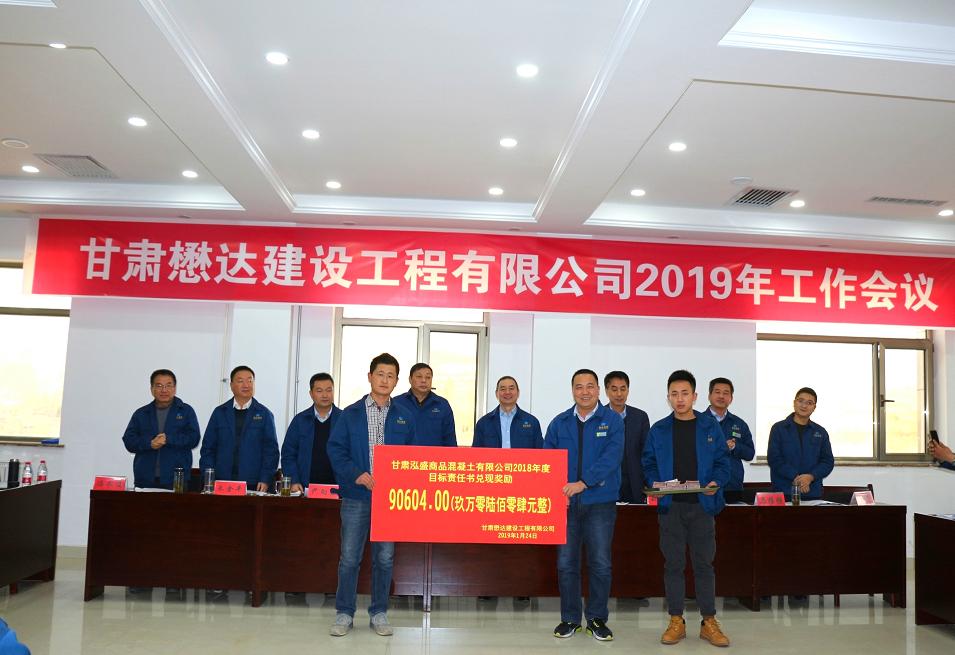 會議還對雁灘·金徽園商住小區(qū)、金徽酒隴南銷售公司員工公寓樓建設(shè)項(xiàng)目榮獲“2018年甘肅省建筑業(yè)文明工地”榮譽(yù)、泓盛商品混凝土有限公司超額完成外銷任務(wù)、泓盛房地產(chǎn)開發(fā)有限公司圓滿完成售房收款任務(wù)兌現(xiàn)獎勵。公司總經(jīng)理封曉成與泓盛商品混凝土有限公司、泓盛房地產(chǎn)開發(fā)有限公司負(fù)責(zé)人簽訂了2019年度目標(biāo)責(zé)任書。
